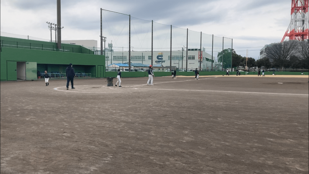 前半は、大会で使うグランドを使用して実戦を想定した練習を行いました。